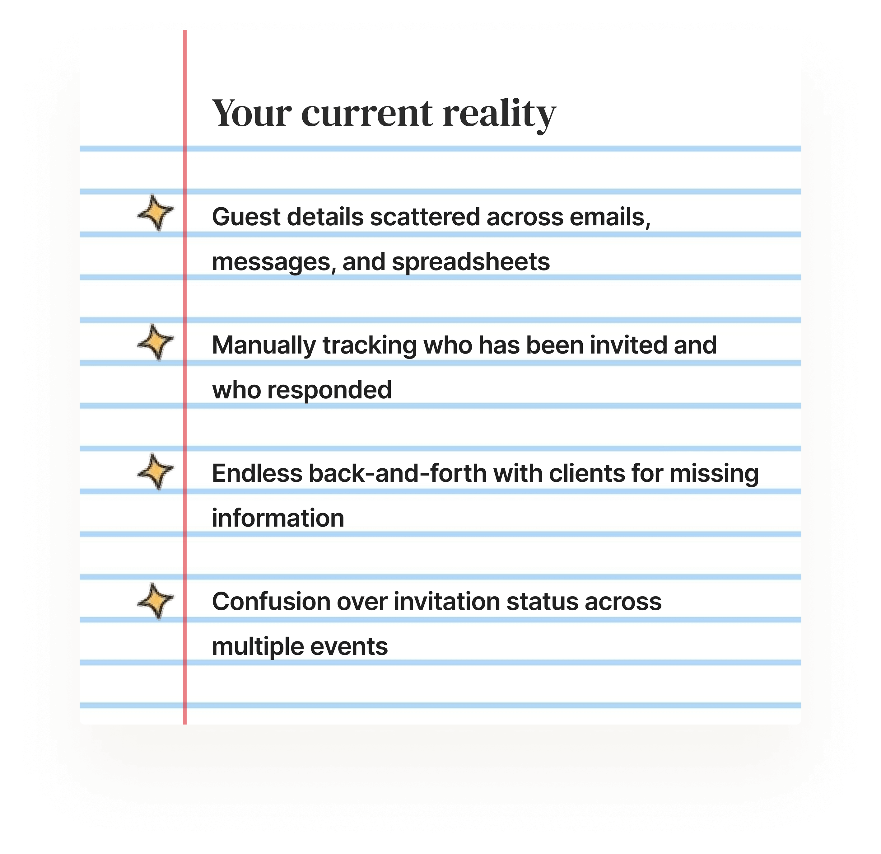 Let clients submit guest details directly — no more chasing information.